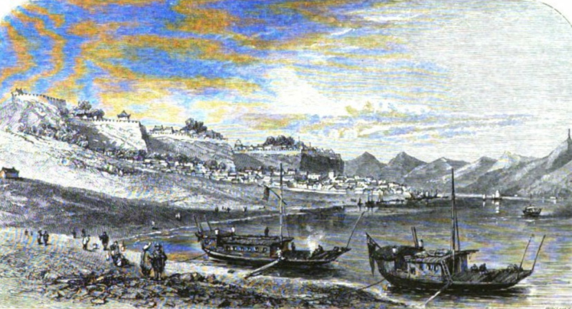 Chungking in 1861. Illustration by Alfred Barton (Thomas Blakiston, Five Months on the Yang-Tsze)