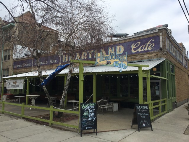 In the bohemian Wicker Park/Bucktown communities, Urbus Orbis (1989-1998) adopted the fashionable rough-edged look of the era (thank grunge rock) in an old converted warehouse with unfinished ceilings, a Starbucks Coffee sign altered to read “FUCK OFF,” painted tables and weirdly pleasant waitresses. Its audacious size and cool crowd made it an instant classic. Outspoken owner Tom Handley turned me on to Ray Oldenburg’s The Great Good Place: Cafes, Coffee Shops, Bookstores, Bars, Hair Salons, and Other Hangouts at the Heart of a Community, and the author’s concept of the “third place” for the community to hang out in. This third place lasted a decade before being priced out of the fast-gentrifying neighborhood. Close by, on Damen and Milwaukee Avenues, was the rival Earwax Café (1990-2002 at the latter location) with a used bookshop in back, Myopic Books. Earwax kicked Myopic out after a dispute, and the bookstore moved to three different locations over the succeeding decades (one next to the Black Cat punk coffeehouse on Division) before returning in revenge to the very space formerly occupied by Earwax/Myopic, having now grown into Chicago’s premier secondhand bookstore.