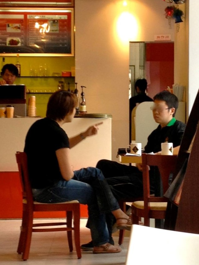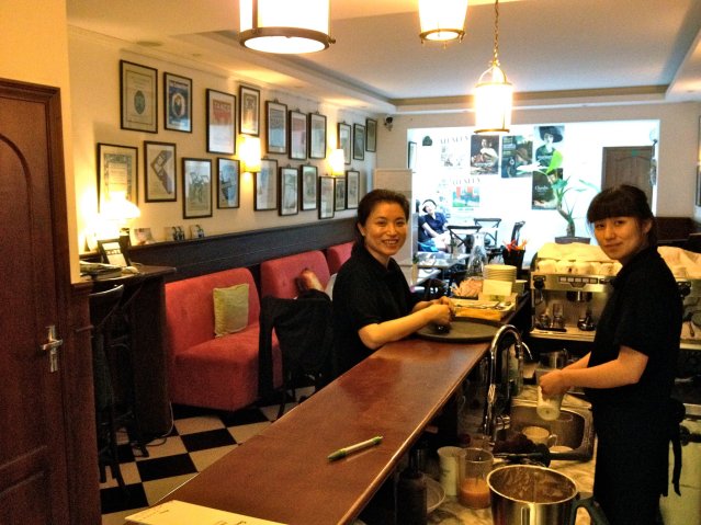 At least the owner in the aforementioned Beijing café got it off her chest and out of the way rather than letting it simmer, even if her harangue did take a full hour. And at least she tended to be around; most Chinese establishment owners and managers never show their face, being too proud to deign to deal with customers. So when the boss does make a point of hanging out, as this Shanghai café owner at left regularly did (above), it’s perhaps the single most reassuring thing they can do.