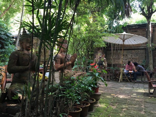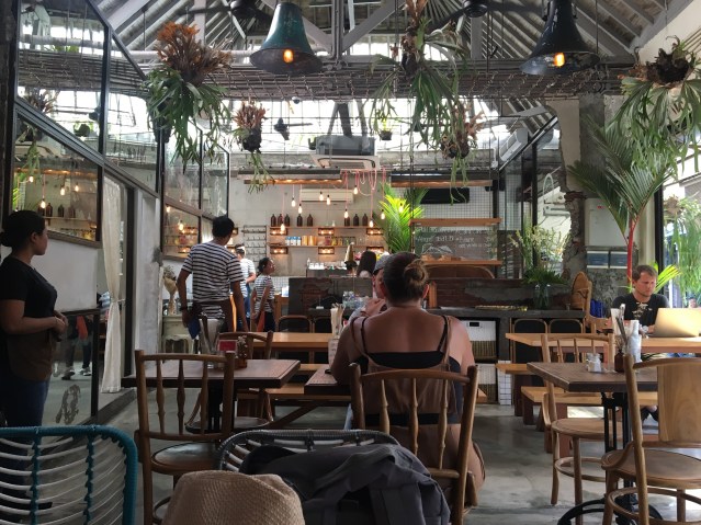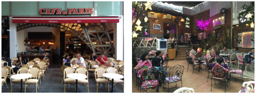 Another solution is the open patio or street-side terrace café. Nothing appeals more than a nice outside space. This can even be done inside a shopping mall, like the faux-Parisian café in Kuala Lumpur, Malaysia, below. Another solution is the café I visited in Saigon, Vietnam, which extended its original interior forward with a makeshift structure of two walls, open front, and an electrically powered retractable roof that I was able to see in action when it started to rain.