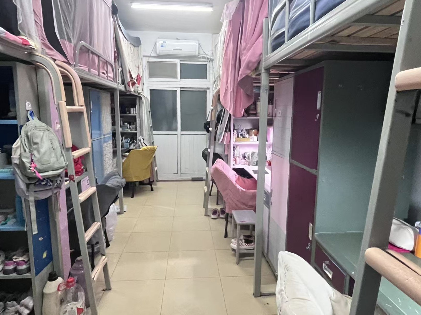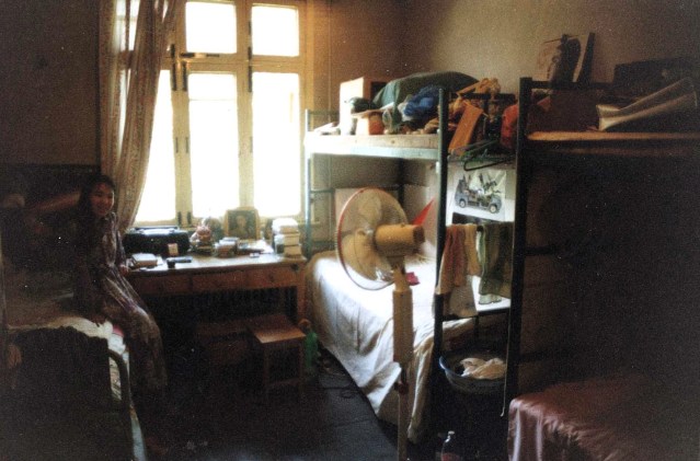 Chinese universities don’t have fraternities or sororities, and it’s still uncommon for students to live off campus. With no tradition of off-campus partying, except for occasional restaurant or KTV outings, Chinese students are accustomed to a much more sheltered and sedentary lifestyle than university students elsewhere. In the 1990s, student dormitories were crowded and stuffy, with barely enough space to walk around. Typically, eight students slept in four bunk beds and shared a single table in lieu of individual desks. Until recent years, electric kettles and hot plates were prohibited in dorm rooms due to limited electricity and fire hazards; large thermoses supplied hot water for drinking. There was no air conditioning in hot weather, and lights were shut off at eleven PM. Bathing took place in the campus public shower, and students had to pay for shower tickets.