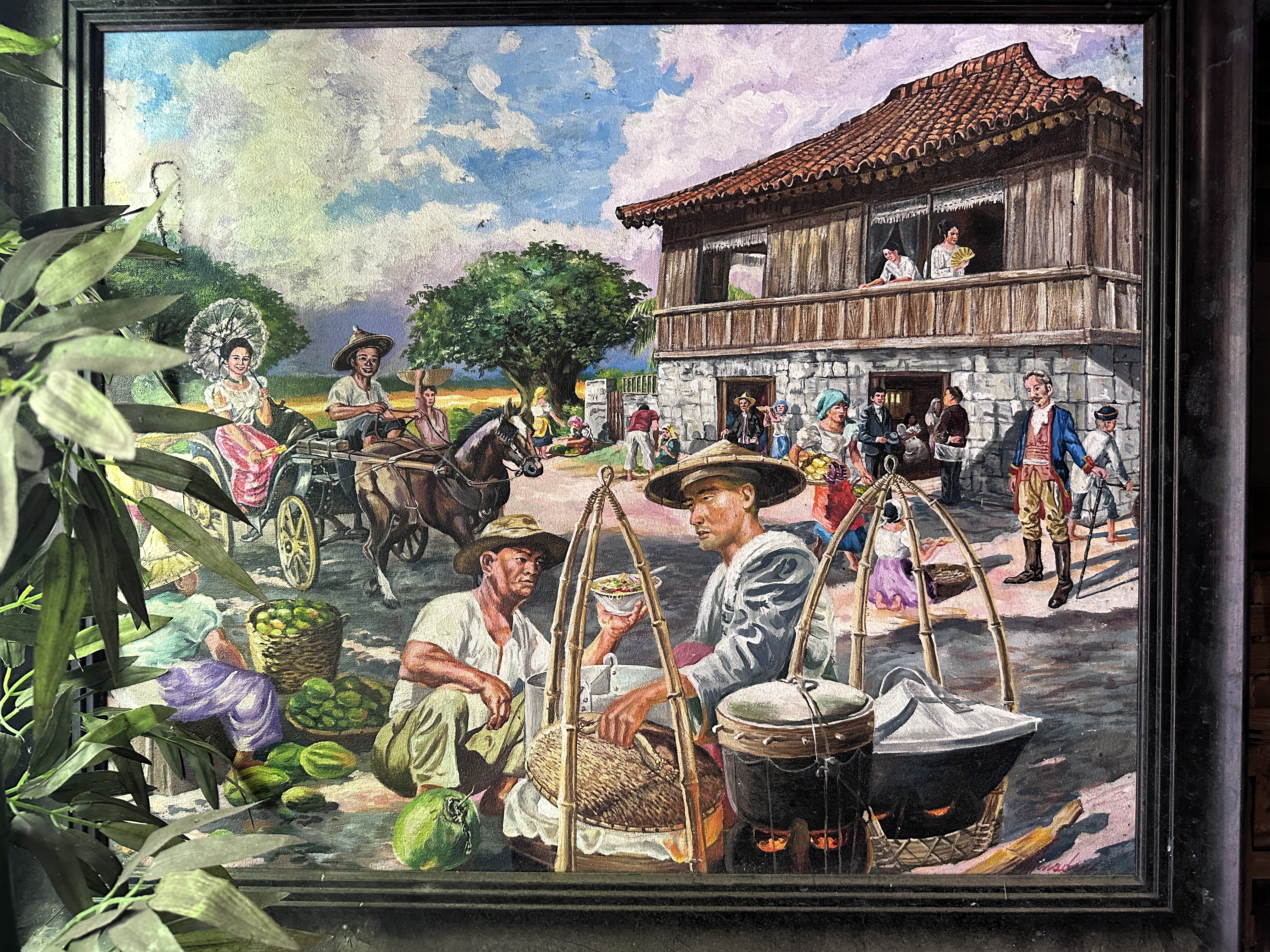 Constructed in the late 1600s, the Yap-San Diego Ancestral House in Cebu City claims to be one of the oldest surviving houses in the Philippines and the first-ever house built outside of China by Chinese immigrants. It originally belonged to a wealthy Chinese merchant, Don Juan Yap, and his Filipina wife, Doña Maria Florido. After eleven generations, the house most recently passed down to Doña Maria’s great-great grandson, Val Mancao San Diego, and his wife, Ofelia, in 2008. Val San Diego is “the choreographer of the San Diego dance company. He is also an art collector. He turned the house into a museum that features his ancestors’ history, making it one of the most visited attractions in Cebu,” the introduction for tourists states. On the ground floor, there are several long dining tables and numerous knickknacks and heirlooms in glass cases, figurines and tableware of the sort you’d more likely encounter in a thrift shop than an antique shop. The second floor contains more dining setups in several rooms, and a bedroom with a canopy bed.